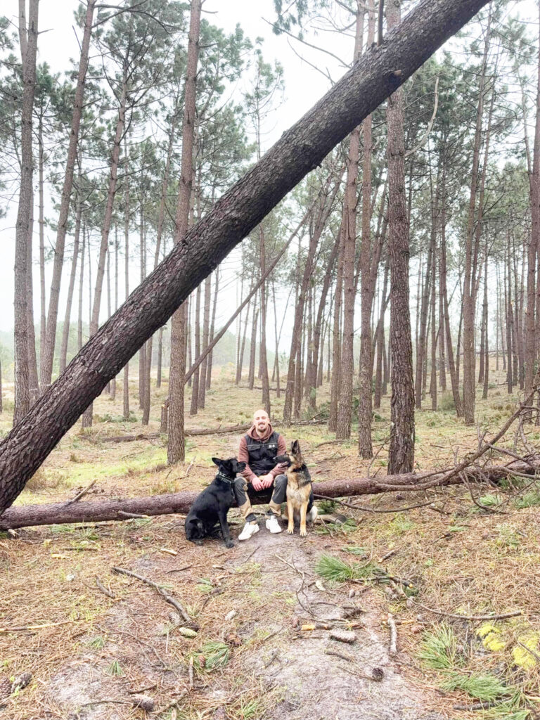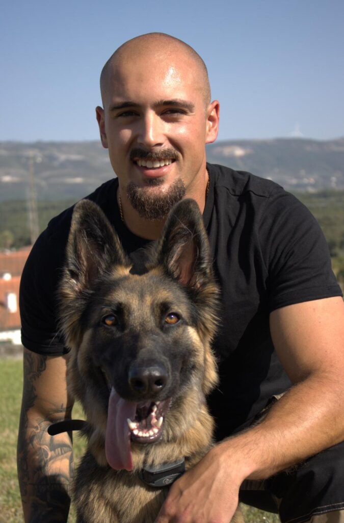 Tudo começou com Freya, a pastora alemã que chegou à sua vida num momento em que ainda estava no exército. Com o tempo, começaram a surgir dificuldades, sobretudo ao nível da ansiedade de separação, o que o levou a estudar comportamento canino e a investir em formações online. Durante este processo, Freya foi mordida por outro cão, episódio que agravou o seu comportamento, tornando-a mais reativa e defensiva.